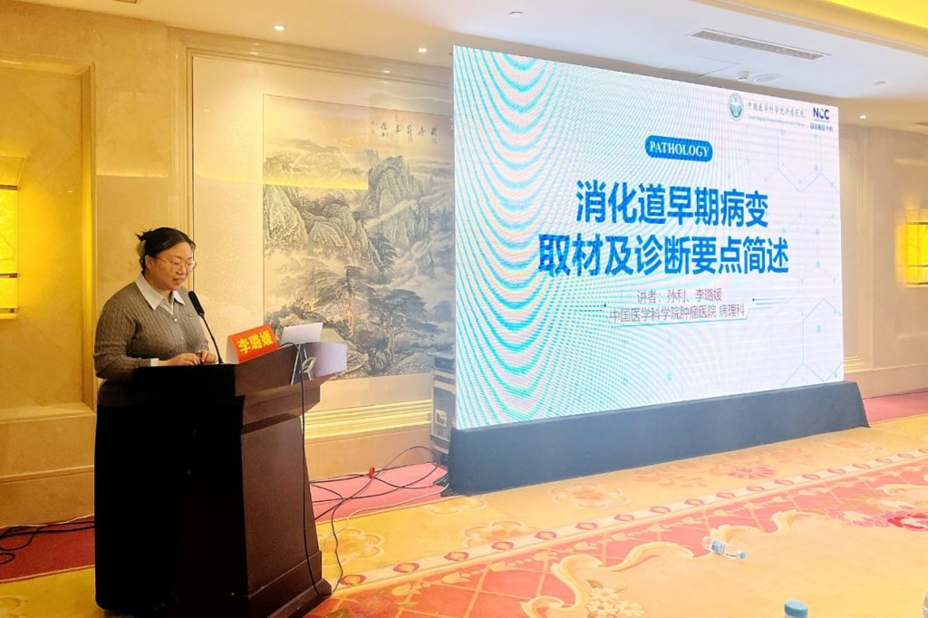 本次培训会上,北京协和医院委派消化内科主任医师郭涛、副主任医师施文两位教授,分别进行了《幽门螺杆菌感染处理》与《内镜超声小探头在消化道早癌中的应用》线上专题报告。此外,基金会特邀中国医学科学院肿瘤医院病理科李璐媛教授(孙利教授指导)现场作了《消化道早期病变取材及诊断要点》专题讲座,为沧州地区消化道早癌病理诊断水平提升赋能。青县人民医院消化内科主任杨德勇教授、沧州市中心医院内镜微创诊疗科主任王亮教授、沧州市人民医院病理科副主任医师杨明月教授与来自北京的三位授课专家进行了交流与分享。
